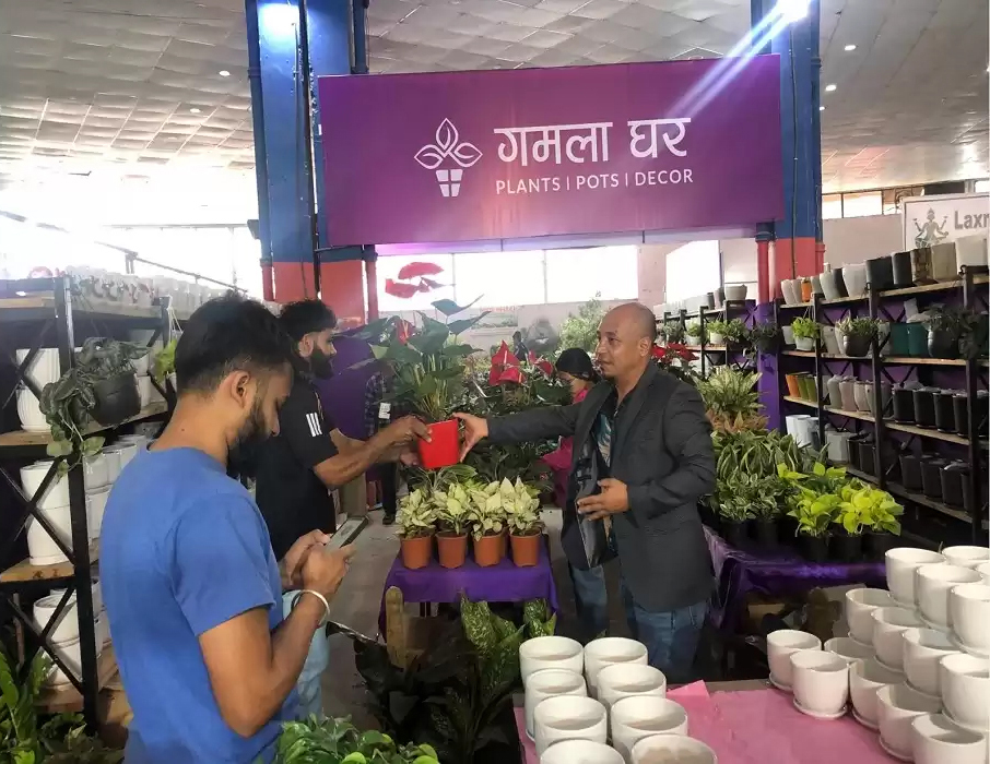 भृकुटीमण्डपमा जारी पुष्प प्रदर्शनीमा शनिबार पुग्दा तुलाधार ग्राहकलाई फूल तथा नर्सरीका बिरुवा बिक्रीमै व्यस्त थिए । प्रदर्शनीमा व्यापार बढाउनुपर्छ भन्ने त थियो नै कुन विरुवाको स्याहारसुसार कसरी गर्ने, कति समयमा कति मात्रामा पानी राख्ने ? भन्ने सीप सिकाउन उनी व्यस्त थिए ।