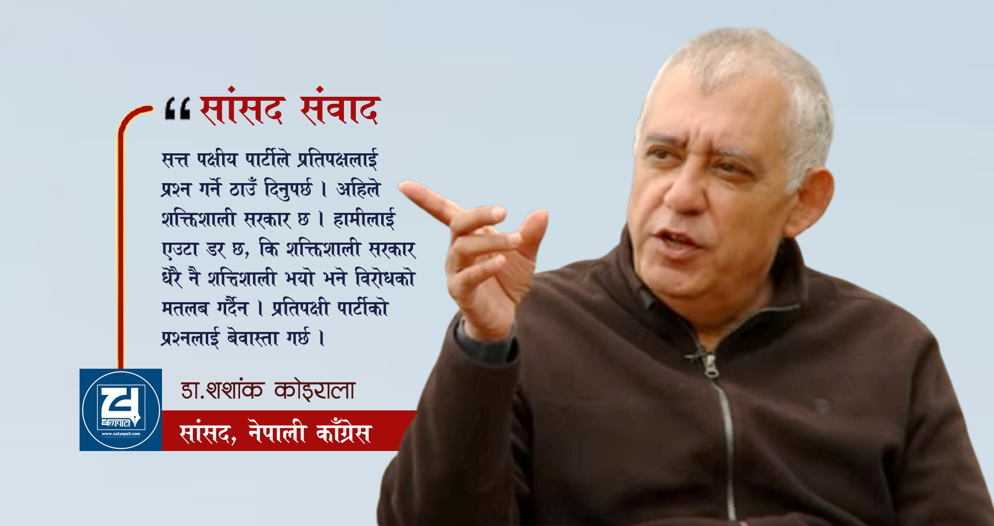 प्रजातन्त्रमा सन्तुलन हुनुपर्छ । एउटा सत्ता पक्षीय पार्टी हुन्छ, अर्को प्रतिपक्ष । प्रतिपक्षी पार्टीले सतर्क गर्ने काम गर्छ । सत्ता पक्षीय पार्टीले प्रतिपक्षलाई प्रश्न गर्ने ठाउँ दिनुपर्छ । अहिले शक्तिशाली सरकार छ । हामीलाई एउटा डर छ, कि शक्तिशाली सरकार धेरै नै शक्तिशाली भयो भने विरोधको मतलब गर्दैन । प्रतिपक्षी पार्टीको प्रश्नलाई बेवास्ता गर्छ ।
