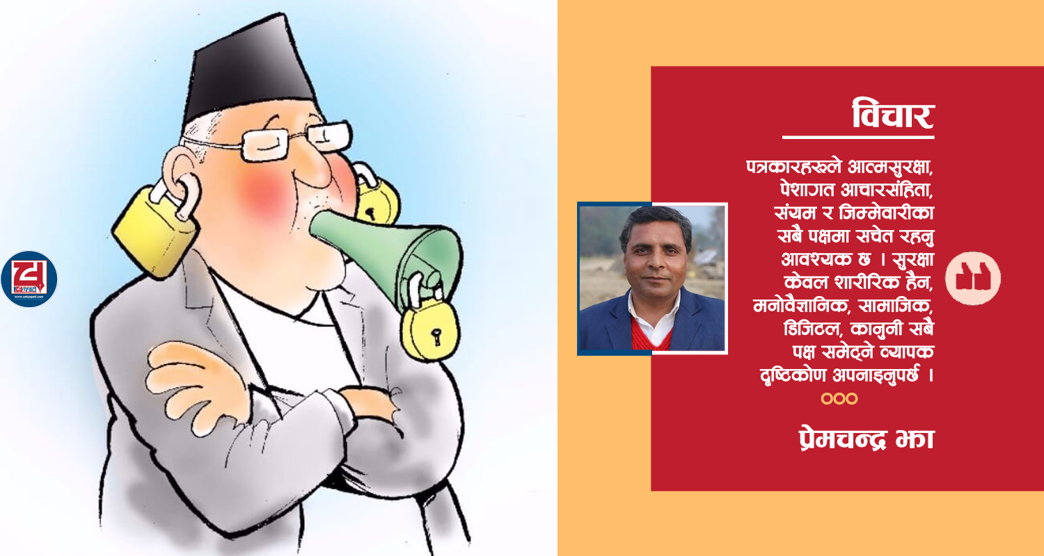 पत्रकारिता लोकतन्त्रको चौथो अंग हो भन्ने आदर्श भनाइले मात्र होइन, व्यवहारमै पनि पत्रकारको भूमिका समाजमा अत्यन्त महत्त्वपूर्ण हुन्छ । जनताको आवाज बन्ने, सत्ताको निगरानी गर्ने र तथ्यमा आधारित सूचना प्रवाह गर्ने पत्रकारको पेशा चुनौतीपूर्ण मात्र होइन, जोखिमपूर्ण पनि छ । यस्तो पेशामा संलग्न व्यक्तिहरूका लागि आत्मसुरक्षा अत्यावश्यक हुन्छ । वर्तमान सामाजिक, राजनीतिक र प्रविधिमैत्री परिवेशमा पत्रकारहरू अनेक खालका जोखिमको सामना गर्दै आएका छन् ।