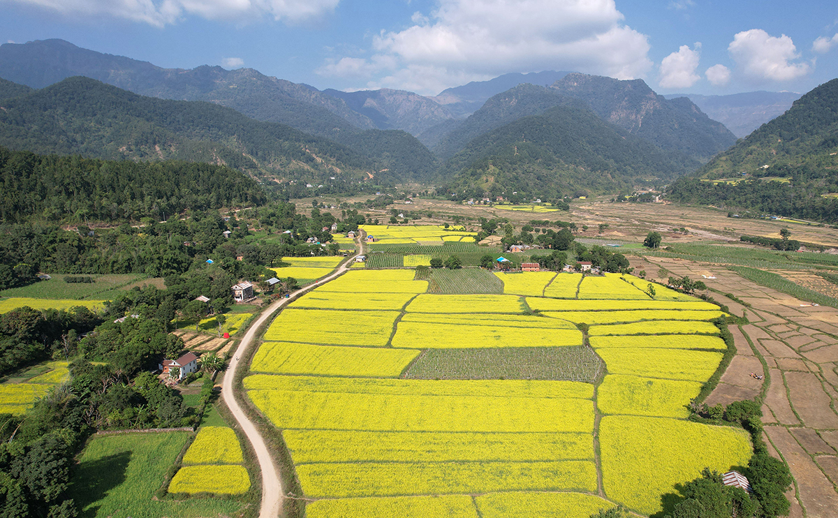 दाङको घोराही उपमहानगरपालिका–१२ स्थित नारेबाङ गाउँ र आसपासको भूभाग । तस्वीर : कुलदीप न्यौपाने । रासस