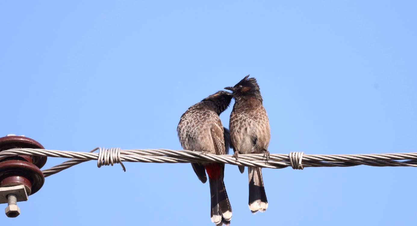पोखरा महानगरपालिका–१४ मझेरीपाटनस्थित बिजुलीको तारमा बसेका जुरेली चराको जोडी । तस्वीर : राधिका कँडेल । रासस