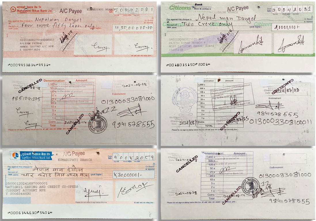 सिटिजन्स बैंकको चेक नसाटिएपछि २०८१ साउन १० गते नेपालमानलाई लुम्बिनी विकास बैंक लिमिटेडको चार करोड ३० लाख रुपैयाँको चेक थमाइयो, तर त्यो चेक पनि साटिएन । २०८१ भदौ १२ गते लुम्बिनी विकास बैंकले गतिशील सहकारीको खातामा रकम नै नभएको जानकारी दियो । त्यसको केही समयपछि सहकारी अध्यक्ष पाठकले महालक्ष्मी विकास बैंकको चार करोड ५० लाख रुपैयाँको चेक दिए । महालक्ष्मी विकास बैंकको खातामा पनि रकम थिएन, चेक साटिएन ।