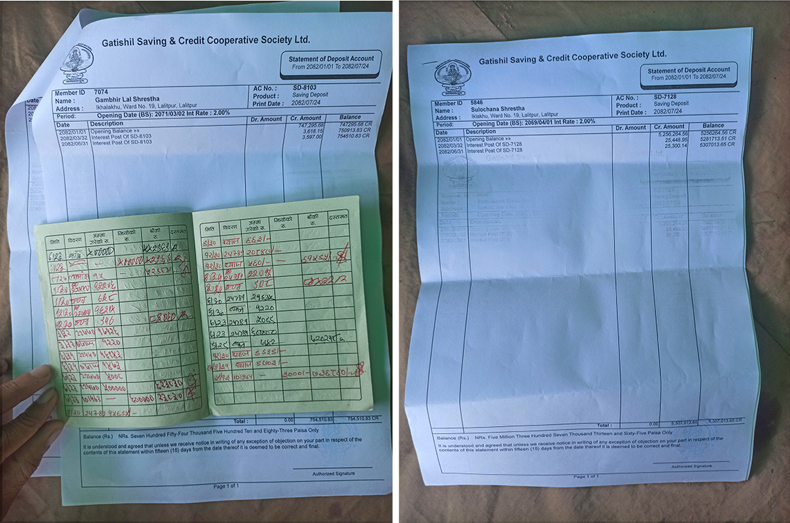 गम्भीरलाल र सुलोचनाले गतिशील सहकारीमा जम्मा गरेको रकम ।