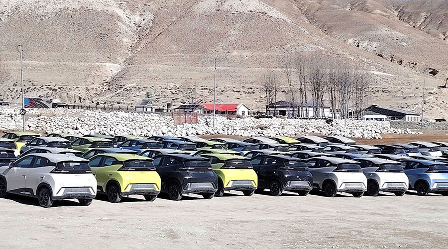 चीनबाट आयात गरेर मुस्ताङको लोमान्थाङ गाउँपालिका-२, नेचुङस्थित मुस्ताङ भन्सारमा ल्याएर पार्किङमा राखिएका विद्युतीय (ईभी) गाडीहरू ।