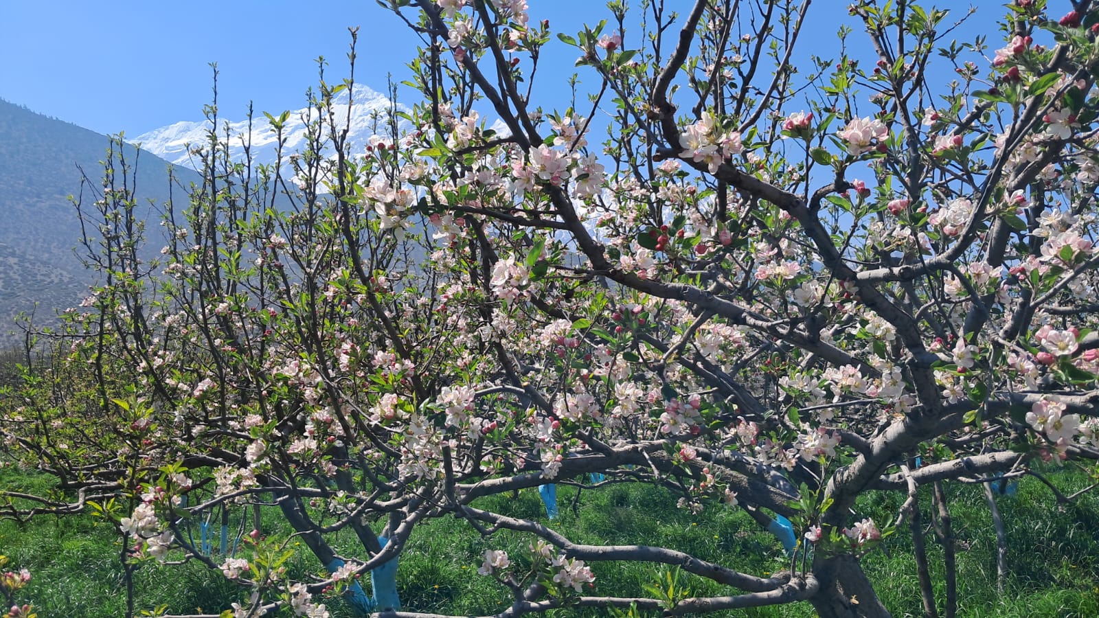 मुस्ताङको स्याउ बगैँचा सेताम्मे भएका छन् । बगैँचाभित्रको स्याउका बोटहरु फूलेर सेताम्मे हुँदै जान थालेका हुन् । स्याउको राजधानीका रुपमा मुस्ताङ परिचित छ । यहाँस्थित कृषि तथा पशु विकास कार्यालयका प्राविधिक सहायक शेरबहादुर रावतले गर्मी बढेसँगैस्याउ बोटहरुमा फूल फुलेर सेताम्मे हुन थालेको बताए ।