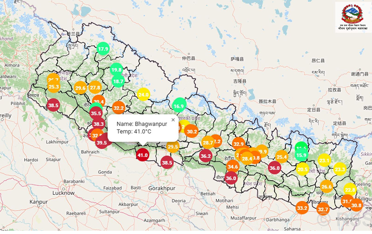 मधेस प्रदेश लगायत बागमती, गण्डकी, लुम्बिनी र सुदूरपश्चिम प्रदेशका तराई क्षेत्र तथा उपत्यका र खोँचहरूमा दिन तातो भएको, सुदूरपश्चिम र लुम्बिनी प्रदेशका पश्चिमी तराई क्षेत्रमा ‘लु’ चल्ने सम्भावना रहेको विभागले जनाएको छ । पछिल्लो सूचनामा अद्यावधिक रहन तथा आवश्यक सतर्कता अपनाउन विभागले अनुरोध गरेको छ ।
